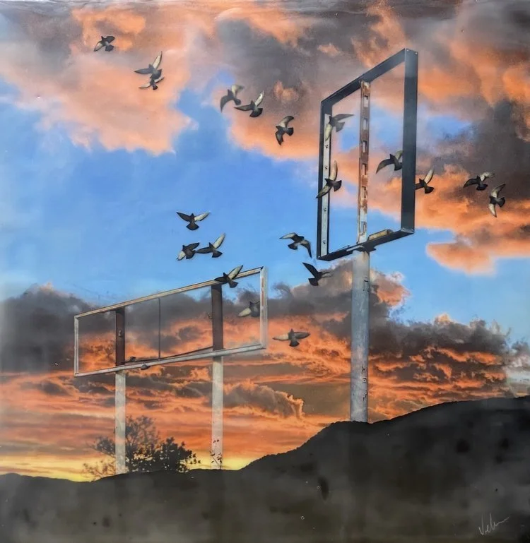 Seeing old signs on the road captures dreams come and gone. The architecture of each one is like a frame in the sky.
